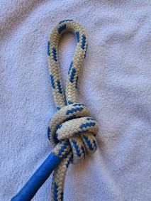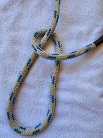 Als stabile Schlaufe verhindert er das Auslaufen des Seils aus einer Öse oder erlaubt das Einbinden ins Gurtzeug eines Rettungssatzes.